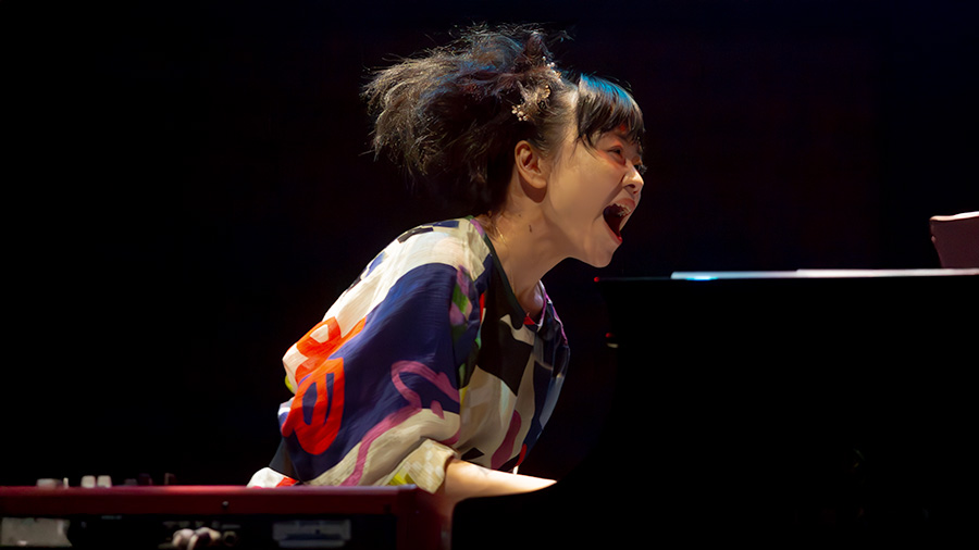 Because that’s also immediately where the friction of this evening lies. Hiromi Uehara is a technical phenomenon, a pianist whose fingers reach speeds that border on the inhuman. Since her breakthrough in 2003 with Another Mind, her mentorship under Ahmad Jamal and Chick Corea, and her Grammy-winning collaboration with Stanley Clarke, she has proven herself as one of the most explosive performers in the jazz world. She performed at the opening ceremony of the Tokyo Olympics in 2021. She composed the soundtrack for the anime film Blue Giant. She is, in short, a titan.