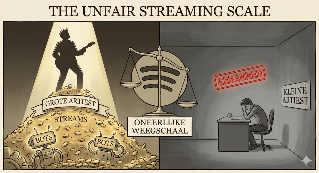 Het patroon is kristalhelder: Spotify introduceert “anti-fraude” maatregelen die vooral indie-artiesten treffen, terwijl een class action lawsuit stelt dat het platform “bewust wegkijkt” bij bot-fraude van grote namen omdat meer “users” – ook nep-users – meer advertentie-inkomsten betekenen.