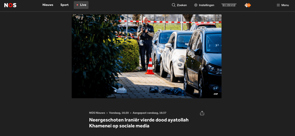 Verderop in datzelfde artikel staat, letterlijk, een uitspraak van justitieminister Van Weel: “Concrete aanwijzingen dat de schietpartij te maken heeft met de Iraanse afkomst van de man, zijn er niet.”